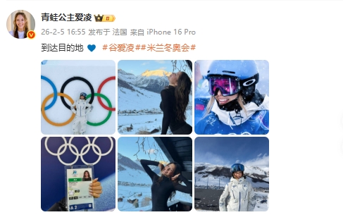 今日,谷爱凌发社媒表示自己已经到达目的地。