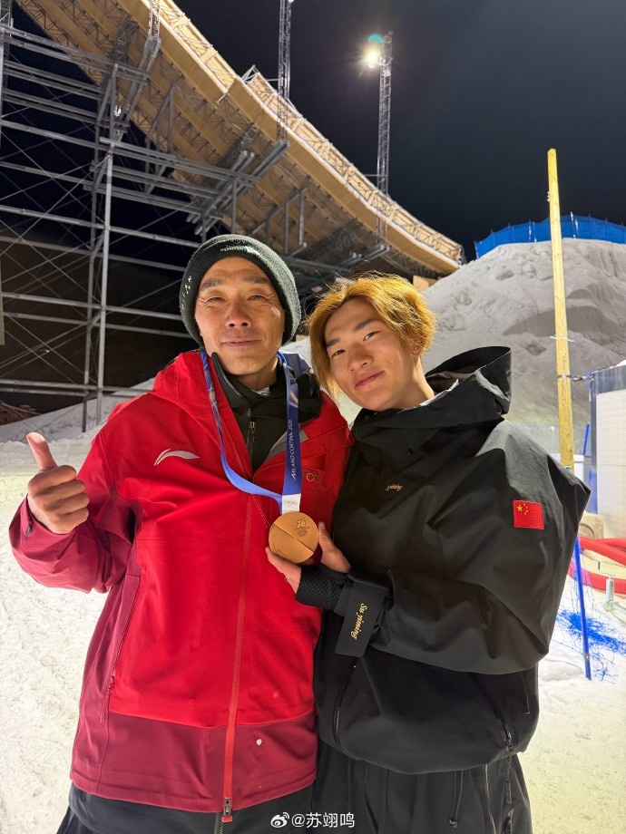 与此同时,苏翊鸣成历史首位两夺男子单板滑雪大跳台奥运奖牌选手。赛后苏翊鸣社媒分享照片,并配文:❤️🇨🇳