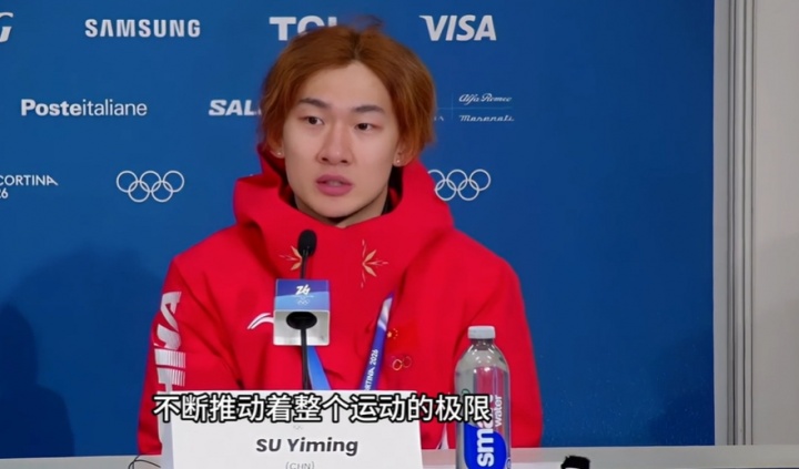 02月08日消息 米兰冬奥会单板滑雪男子大跳台决赛,苏翊鸣总分168.5分获得铜牌,赛后苏翊鸣出席新闻发布会。