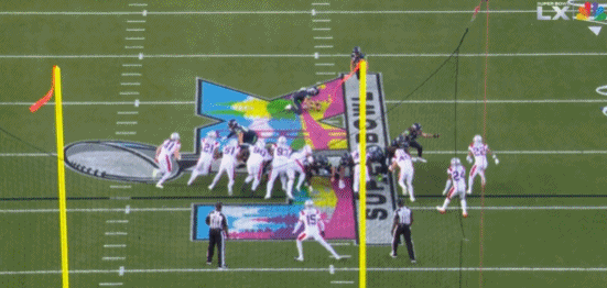 第二节还剩15秒时,冈萨雷斯单防JSN,飞身扑救几乎完成抄截。随后海鹰迈尔斯任意球射门命中再添3分,半场9-0领先爱国者。