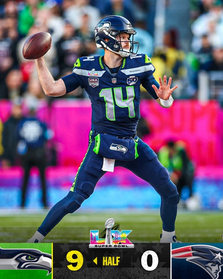 02月09日消息 北京时间7:30第60届超级碗在加州圣克拉拉的李维斯体育场进行,西雅图海鹰vs新英格兰爱国者。半场海鹰9-0领先爱国者。