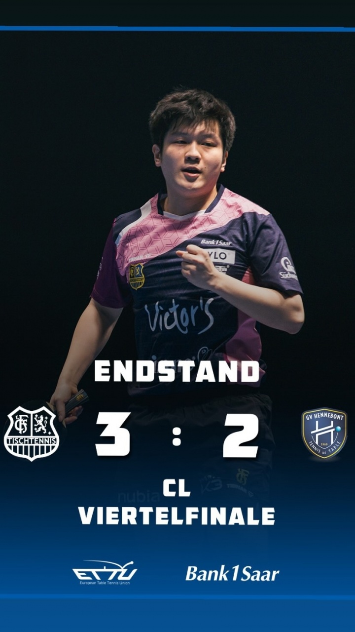 欧冠1/4决赛次回合:萨尔布吕肯3-2晋级半决赛,樊振东两盘告负
