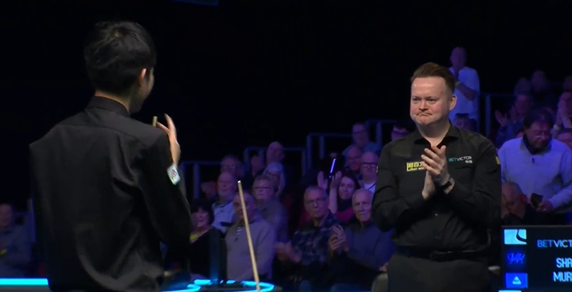 比赛进行到最后一颗黑球时,墨菲早早站起准备为常冰玉鼓掌,握手后与全场观众一样,长时间为常冰玉的精彩表现鼓掌!