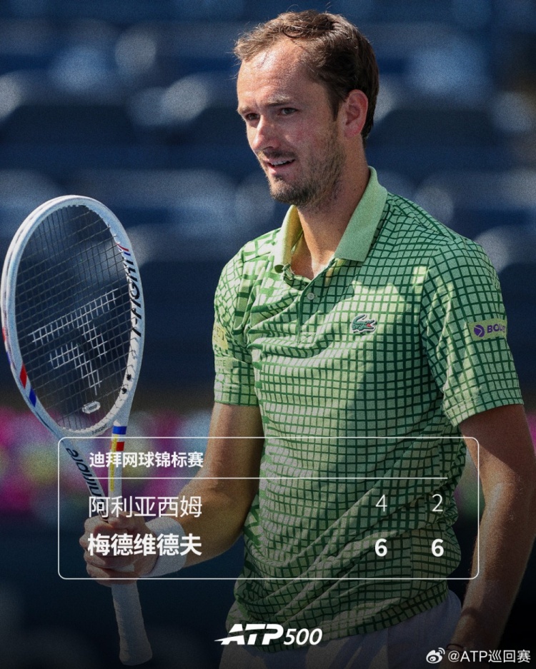 梅德韦杰夫2-0轻取阿利亚西姆,晋级ATP500迪拜站决赛