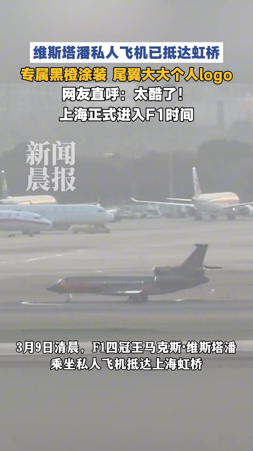 帅炸了!维斯塔潘搭乘私人飞机抵达上海虹桥,备战中国大奖赛