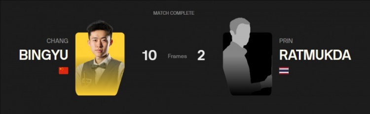 全场比赛常冰玉打出三杆破百(119、137、103)和三杆50+(61、58、61),第一阶段8-1领先普林·拉特穆达,最终10-2战胜对手晋级。