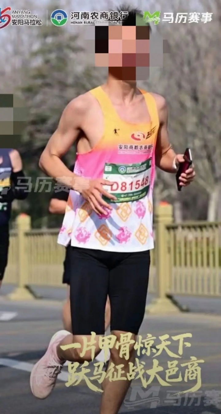 组委会公布的获奖名单显示,安阳马拉松半程马拉松女子项目安阳市民第一名获奖者为桑某某,号码D81548,成绩为1小时29分05秒。多位网友发布的现场比赛图片显示,D81548号码布佩戴在了一名男子的胸前。这名男子身穿运动背心,戴着眼镜,手里还拿着一部手机。根据组委会此前公布的各个组别的奖励办法,女子半程马拉松安阳市民奖第一名获得者奖金是1000元。