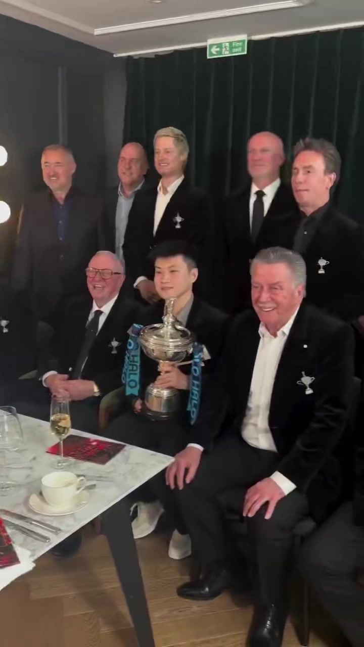 无比荣耀!赵心童手捧世锦赛冠军奖杯,与众多世界冠军合影留念