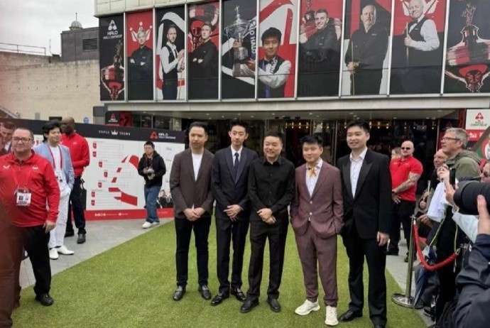本次世锦赛共有5名中国选手直接晋级正赛,分别为:丁俊晖、赵心童、肖国栋、斯佳辉和吴宜泽。这五人也在媒体日进行了合影留念,其中丁俊晖占据合影的绝对C位,赵心童和吴宜泽在丁俊晖的左右侧。
