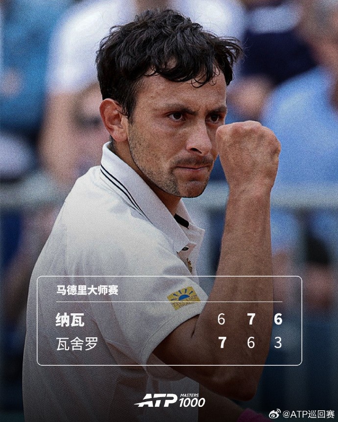 ATP1000马德里大师赛第二轮:美国选手纳瓦2-1逆转14号种子瓦舍罗