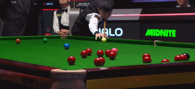 第10局,赵心童上演一杆打进三颗红球的名场面↓